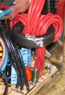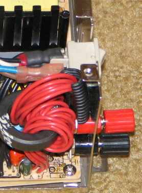 Pour la face avant, la mise en place de 2 fiches bananes rouge et noir, isolées de la tôle est assez aisée.